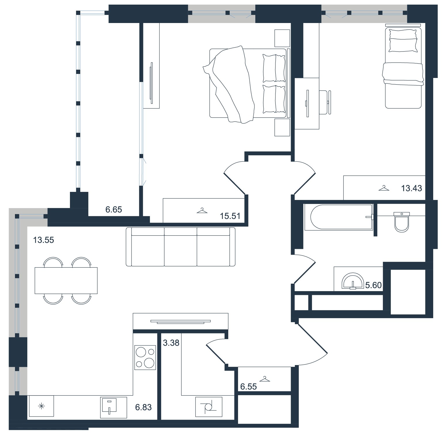 Квартиры с дизайнерским ремонтом от застройщика в двух цветовых решениях.